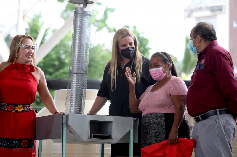 Poza Rica, Ver., 28 de octubre de 2021.- El Sistema Estatal para el Desarrollo Integral de la Familia (DIF) beneficia con estufas ecológicas, refrigeradores, paquetes de láminas y tinacos de mil 100 litros a dos mil 161 familias de escasos recursos en 25 municipios del norte.