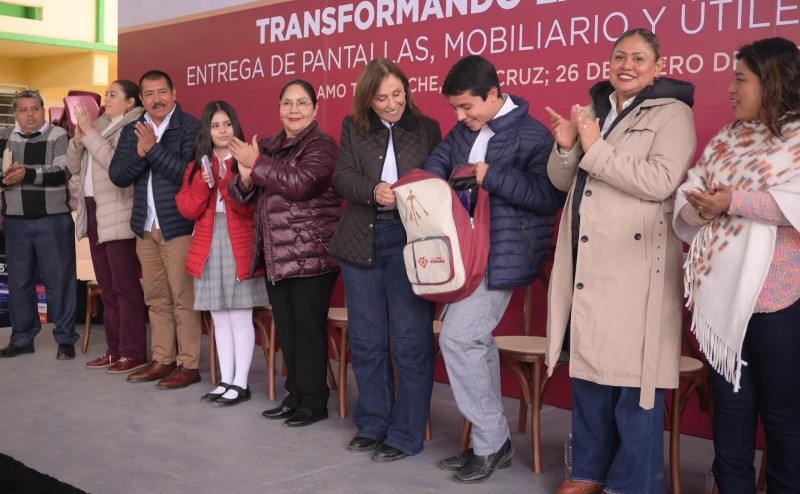 Acompañada de la secretaria de Educación de Veracruz, Claudia Tello Espinosa, y del alcalde José Roberto Arenas Martínez, informó que esta semana recibirán mochilas y útiles las niñas y los niños de preescolar, y la próxima, los de primaria, extendiendo el respaldo a municipios de la región Huasteca.