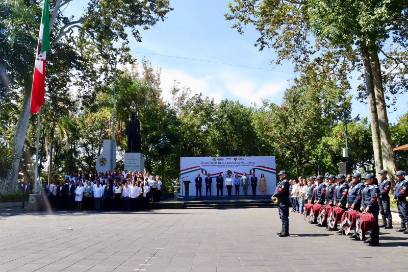Xalapa, Ver., 11 de agosto de 2025.– En el marco del Programa de Fortalecimiento del amor y respeto a los Símbolos Patrios, a través de la Secretaría de Educación de Veracruz (SEV) dirigida por la Dra. Claudia Tello Espinosa, realizó este lunes el izamiento de la Bandera Nacional en el Parque Juárez, en coordinación principal del Gobierno del Estado, encabezado por la Gobernadora Rocío Nahle García.