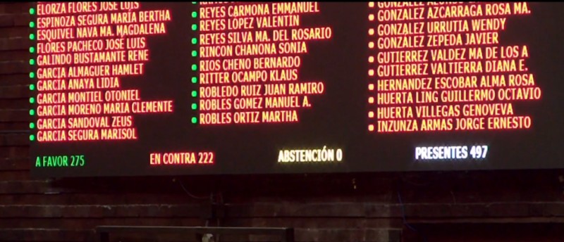 Después de una larga jornada de trece horas de debate, con apasionados discursos y momentos de tensión en que en varias ocasiones hubo conatos de enfrentamiento físico, se procedió a la votación, en la que los votos de los diputados que defendieron la Reforma no se alcanzaron para la mayoría relativa, así que fue rechazado el proyecto de decreto de la Reforma Eléctrica con 275 votos a favor, 222 en contra y cero abstenciones; con la ausencia de tres diputados de Morena y PT, entre ellas la del cantante Marco Antonio Flores, quién se encuentra en Estados Unidos para ofrecer un concierto; seguramente su abandono será tomada muy en cuenta, así como también la labor de los operadores políticos en la Cámara de Diputados a los que no les cuadraron los números.