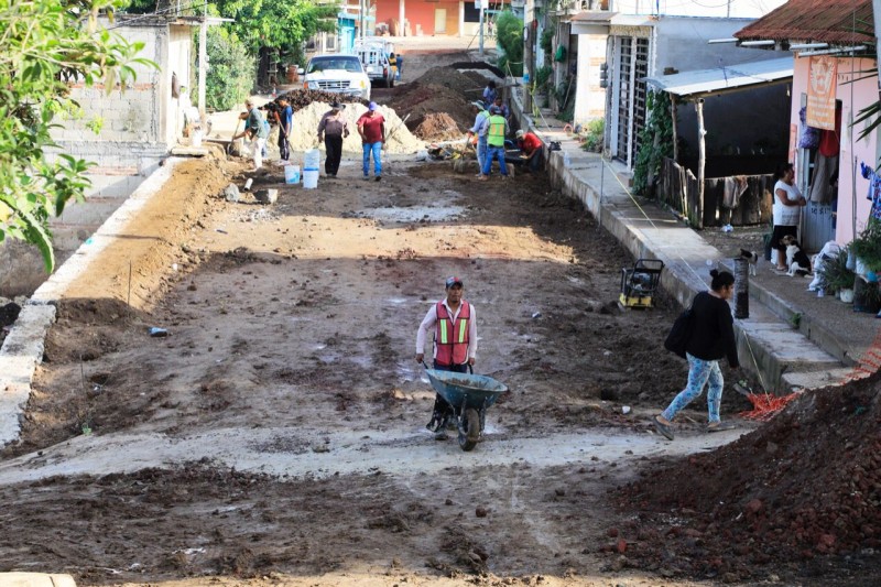 Xalapa, Ver.- Con el fin de mejorar la conectividad y elevar la calidad de vida de habitantes de la zona rural, el Ayuntamiento de Xalapa realiza la pavimentación con concreto hidráulico de la calle Francisco I. Madero, en la congregación El Castillo.