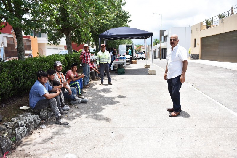Acompañado por el regidor Daniel Fernández Carrión, el Alcalde convivió con los trabajadores y reconoció el esfuerzo que llevan a cabo para acelerar el proceso constructivo de esta obra.