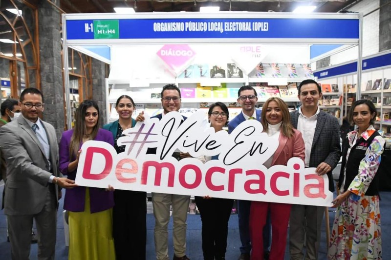 El stand del OPLE atendido por el personal de la Dirección Ejecutiva de Capacitación Electoral y Educación Cívica, cuenta con una gran variedad de títulos totalmente gratuitos sobre democracia y participación ciudadana.