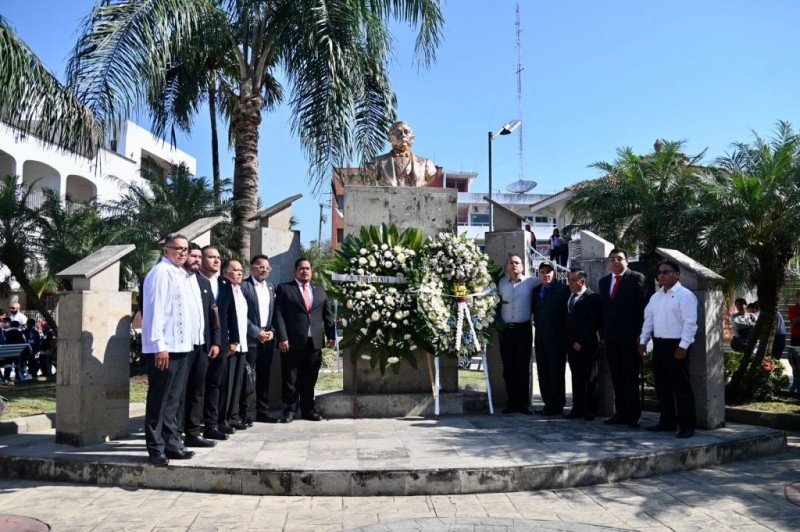 Autoridades municipales, navales y militares presentaron una ofrenda floral frente al busto de Benito Juárez y guardaron la primera Guardia de Honor; mientras que la segunda guardia estuvo formada por representantes de la masonería de nuestro municipio.