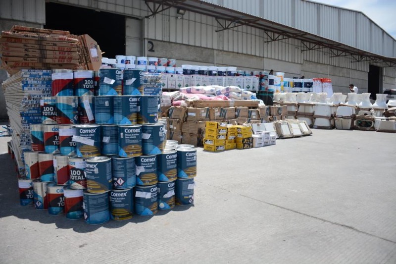 Entre los materiales otorgados se encuentran: pintura vinílica, esmalte, impermeabilizante, accesorios de aplicación y resane, suministros eléctricos (contactos, focos led, lámparas plafoneras y cuadradas, cables), tablaroca, puertas, bisagras, chapas y equipo hidrosanitario (lavabos, tazas sanitarias, mezcladoras, llaves angulares, fluxómetros de pedal, soportes y cespol para lavabo).