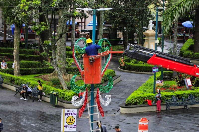 Xalapa, Ver.- Para exaltar el fervor patrio durante septiembre y previo a la celebración del 213 aniversario de la Independencia Nacional, el Ayuntamiento inició la colocación de elementos decorativos alusivos a estas fechas, en el parque Benito Juárez y la fachada del Palacio Municipal.