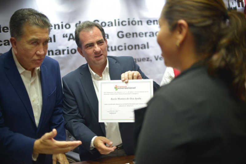 En la sede del Comité Directivo Estatal del PRI, ante los liderazgos estatales y nacionales del tricolor y de la Alianza Generacional, agradeció y reconoció en la persona de Héctor Yunes Landa y de Jorge Moreno Salinas el respaldo de las y los aliancistas expresada especialmente en este acto.