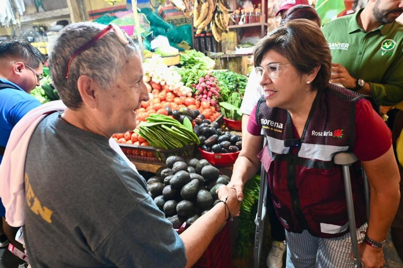Acompañada por el diputado federal Javier Herrera Borunda, del PVEM, y la candidata a regidora, Luz del Carmen Baxzi García, Rosa María caminó entre los puestos de frutas, verduras, carnicerías, fondas, herbolarias y demás giros tradicionales que dan vida a este centro de abasto, escuchando con atención a quienes, desde hace años, trabajan en condiciones cada vez más precarias por el abandono de las autoridades municipales.