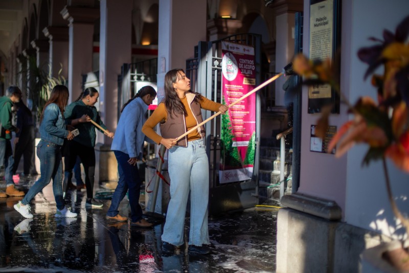 La jornada, organizada por la Dirección de Juventud, que dirige el Lic. Rafael Alarcón Barrientos, contempló diversas acciones de limpieza, ordenamiento y mantenimiento en áreas comunes e instalaciones del inmueble, como parte de una estrategia integral para fortalecer la cultura del cuidado del patrimonio público y mejorar las condiciones de los espacios de trabajo y atención ciudadana.