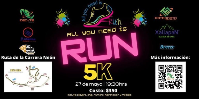CECyTEV convoca a carrera 5K: All you need is run Festival Estatal de Arte y cultura –2023 La salida será a las 19...