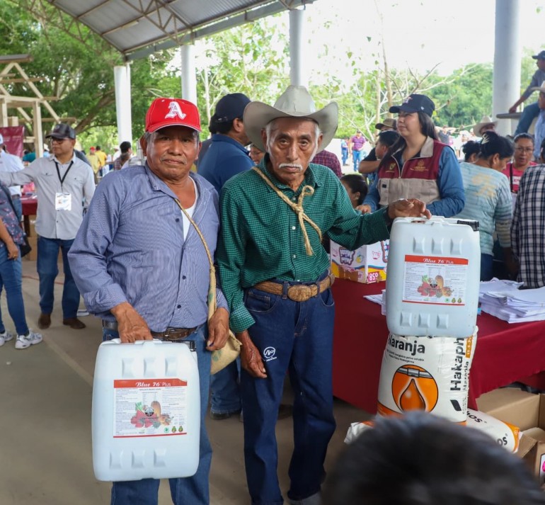 Entrega equipamiento e insumos para agricultura, acuacultura y apicultura.
