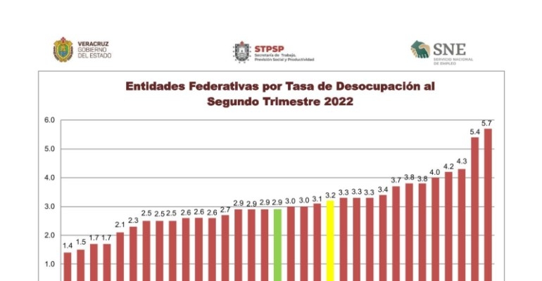 Al segundo trimestre de 2022, la tasa de desempleo en el estado se encuentra por debajo de la media nacional
