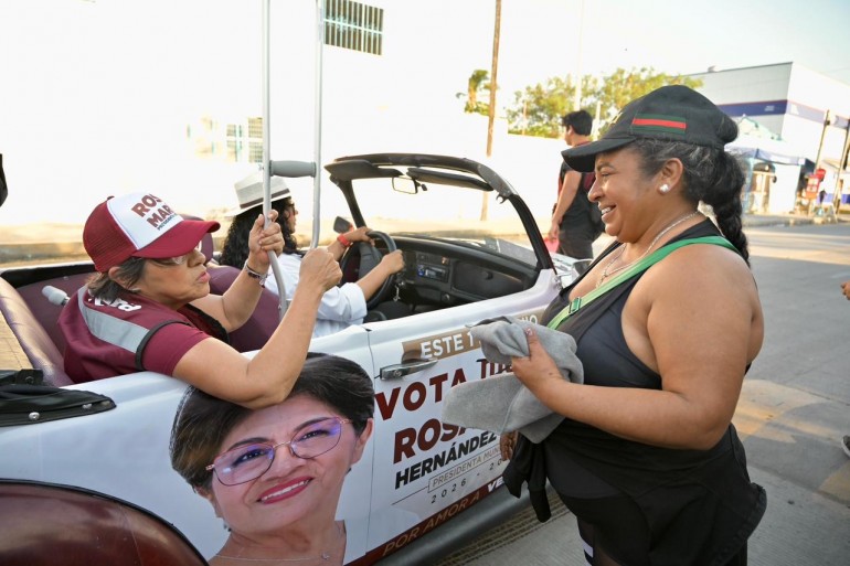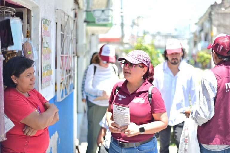 La candidata de Morena continúa visitando hogares y comercios para presentar sus propuestas