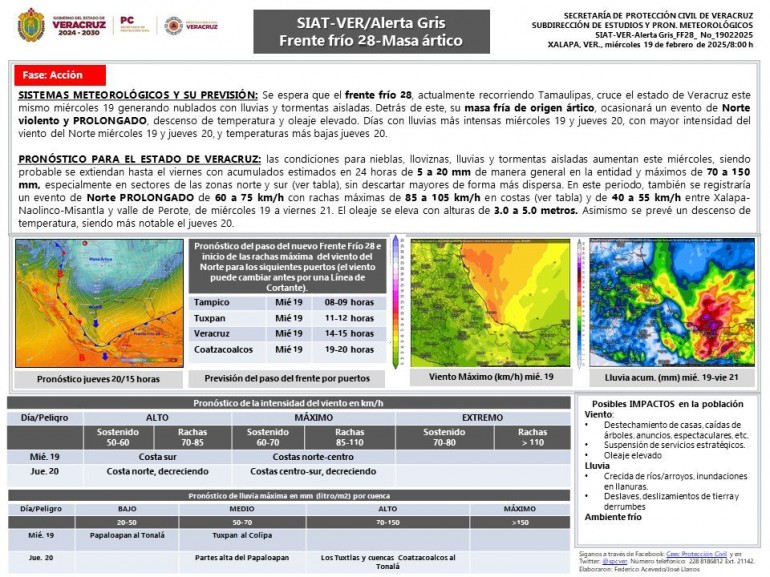 >El Frente Frío 28 traerá Norte fuerte prolongado, así como lluvias en el sur.