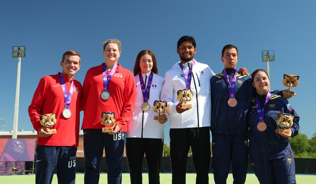 La medallista olímpica Ángela Ruiz, Adriana Castillo, Naomi Aguilar y Máximo Méndez hicieron ondear la bandera trico...