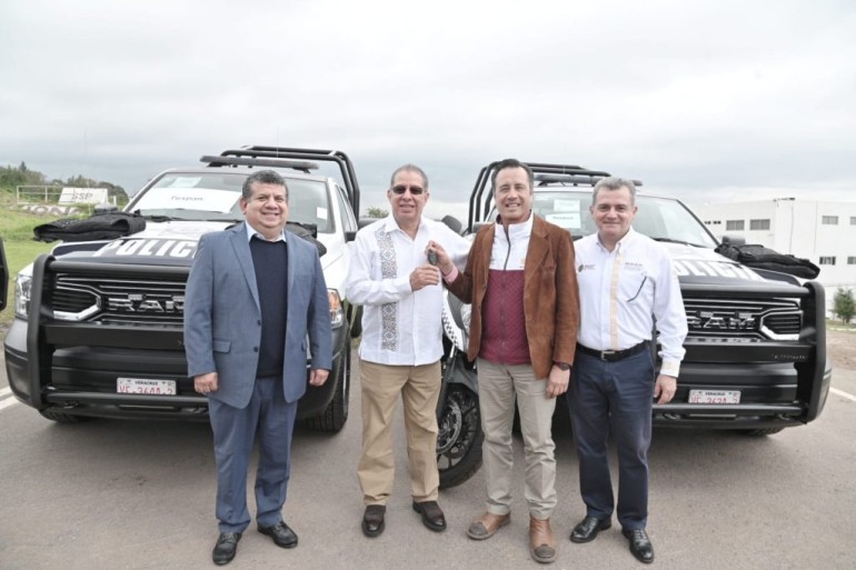Gobernador Cuitláhuac García Jiménez entrega 3 unidades y equipo táctico al alcalde José Manuel Pozos Castro para f...